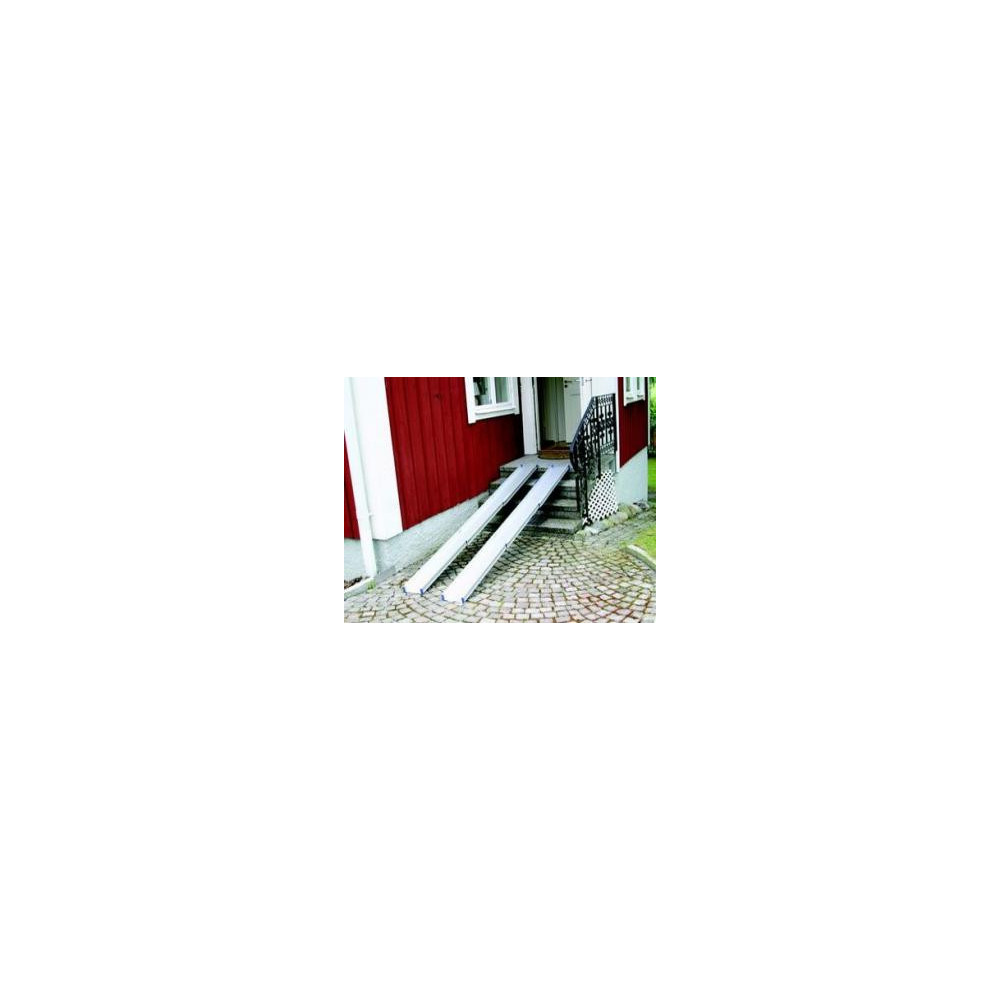 Rampas de aluminio telescópicas y plegables que proporcionan una amplia gama de soluciones frente a los problemas diarios y no sólo para los usuarios de sillas de ruedas. El peso se ve reducido gracias a las perforaciones hechas en la rampa, obteniendo una excelente superficie antideslizante. Estas rampas pueden instalarse en cualquier lugar sin necesidad de usar herramienta alguna. Recomendadas para una altura máxima de 60cm. Ref. S057-212 Largo mín: 72cm,  máx: 212 cm.  Ancho interno: 25cm. Peso máximo soportado 300 Kgs. Ref.S057-303 Largo mín: 106cm, máx: 300cm.  Ancho interno: 25cm. Peso máximo soportado: 250 Kgs.