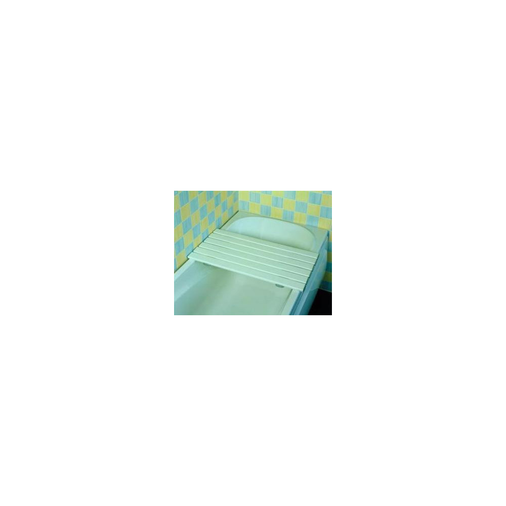 Tabla de bañera en plástico súper-resistente de mayores dimensiones que las corrientes. La parte que reposa sobre el borde de la bañera es de material antideslizante. Drenaje rápido del agua. Largo: 68,6 cm. Ancho: 35,6 cm. Peso: 3 Kg. Peso máximo: 190 Kg.
