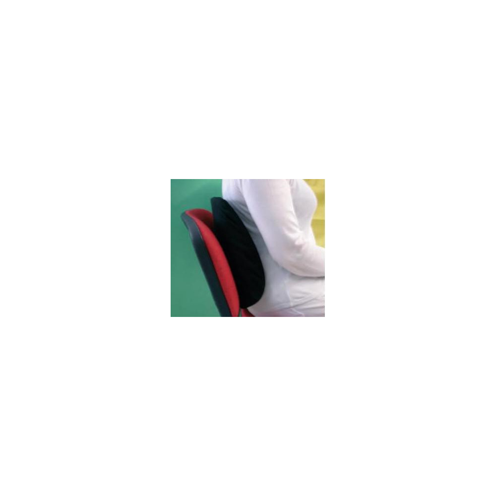 Cojín lumbar viscoelástico con funda de algodón. Dispone de cinta de sujeción lavable a temperatura de 40 Cº.