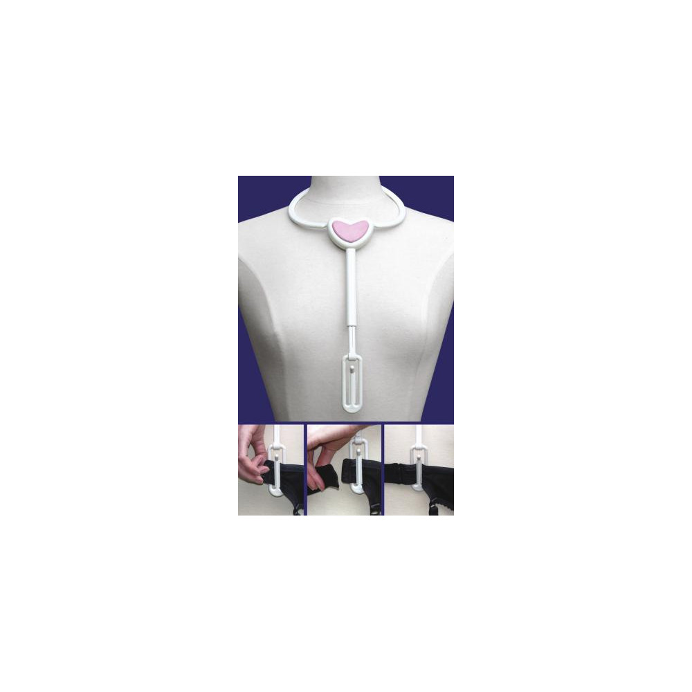 Diseñado para ponerse el sujetador sin necesidad de la ayuda de otra persona. A un lado ponemos la correra del sujetardor mientras el otro extremo de la correa se envuelve alrededor del cuerpo. Eje telescópico.