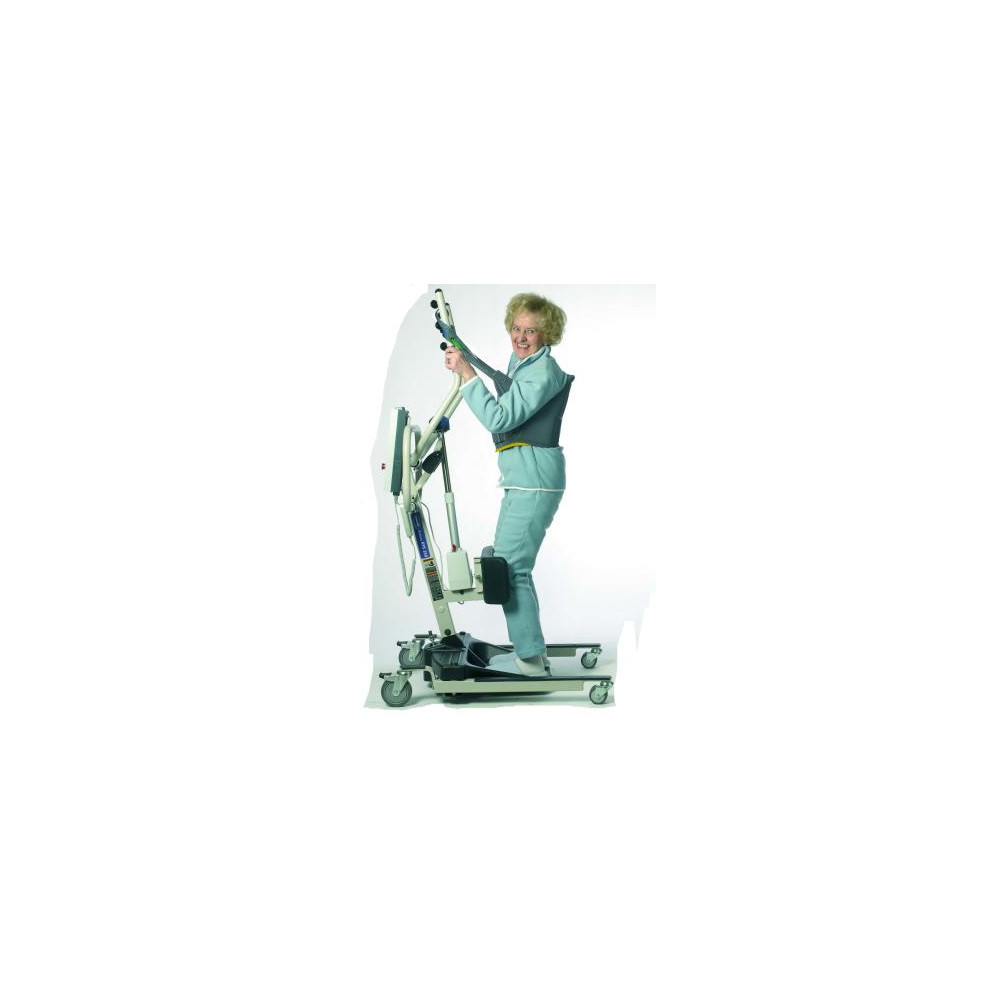 Arnés de transferencia de incorporación. Para usuarios con suficiente control en el cuerpo pero sin independencia para permanecer de pie. Adicionalmente el paciente debe poseer equilibrio mental y buen estado físico y mantener el control de la cabeza, así como también la habilidda de sujetar la grúa durante la transferencia. Tiene un refuerzo acolchado y material antideslizante en la espalda para asegurar una posición comoda durante la transferencia. Disponible en talla M y L. Lavables a 95º.