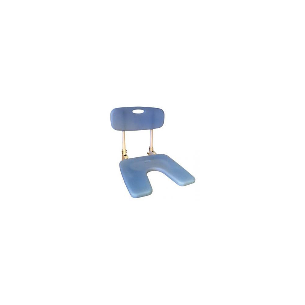 Asiento de ducha abatible. Construido en aluminio, asiento y respaldo en termoplástico. Ancho 44cm. Profundidad 46cm. Peso máximo del usuario 100 Kgs.