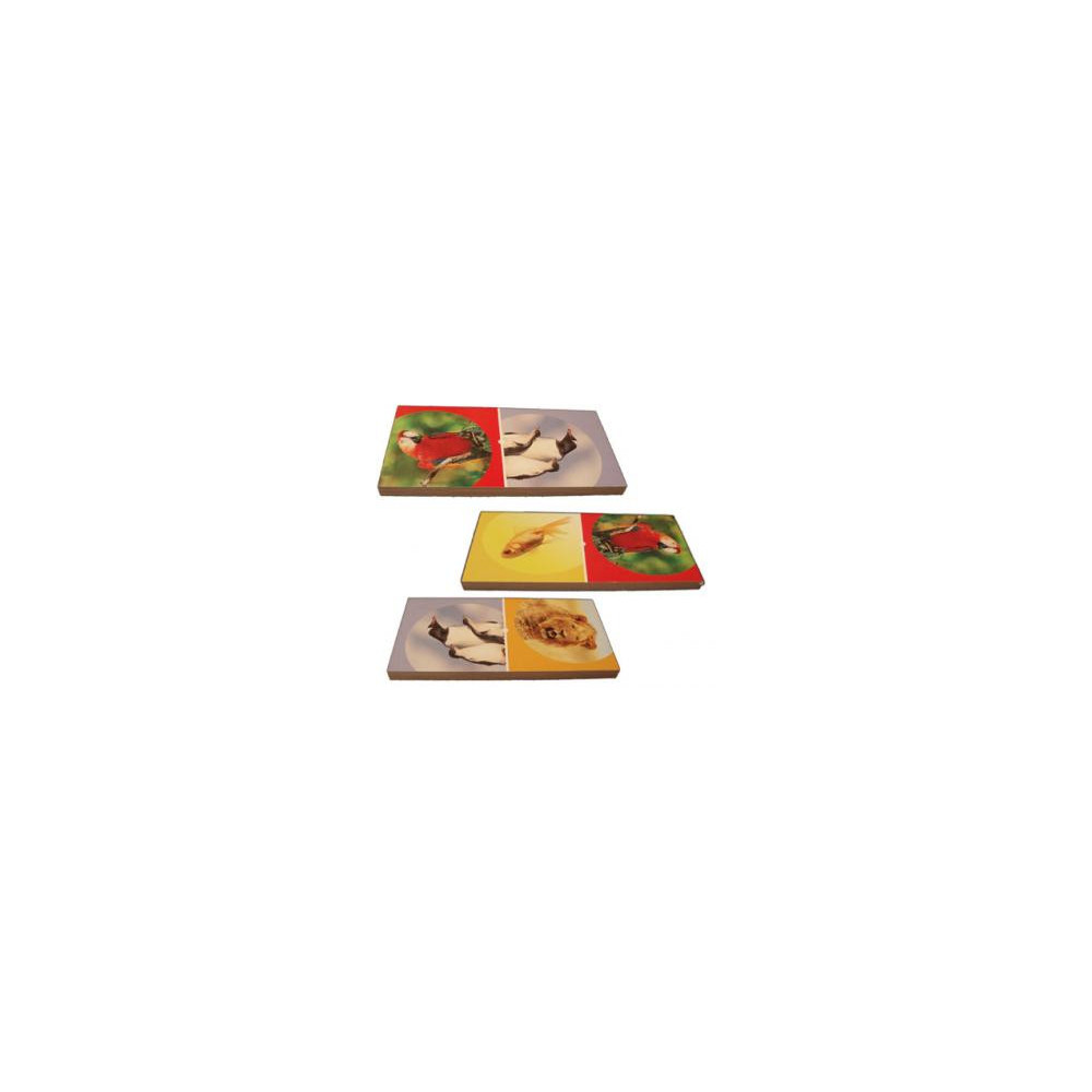 Dominó con fotos de animales. Estimula la capacidad de observación, asociación y orientación espacial. 28 piezas.