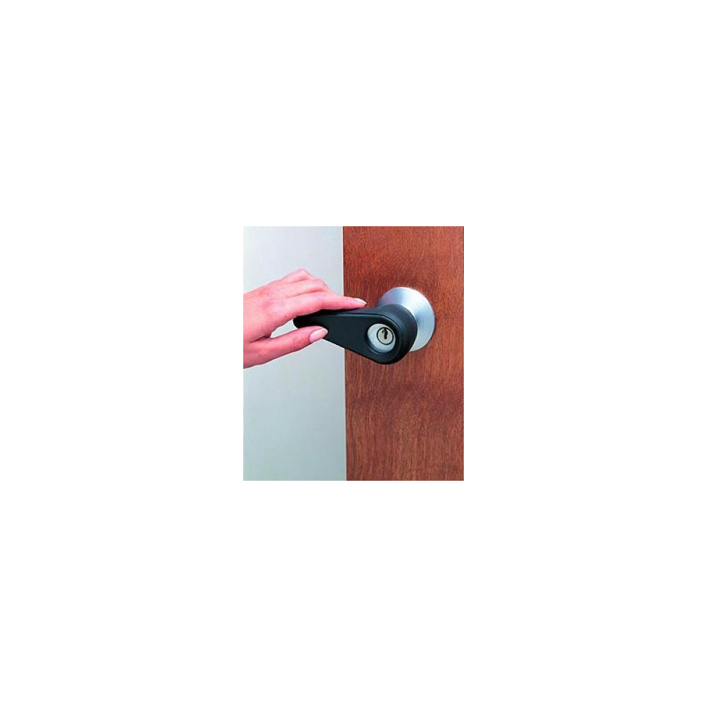 Ideal para personas con limitaciones para agarrar o girar los pomos de las puertas. Se coloca en pomos de 5 a 6,5 cm. de diámetro. Longitud de la manivela: 65 cm. Peso: 50 g.