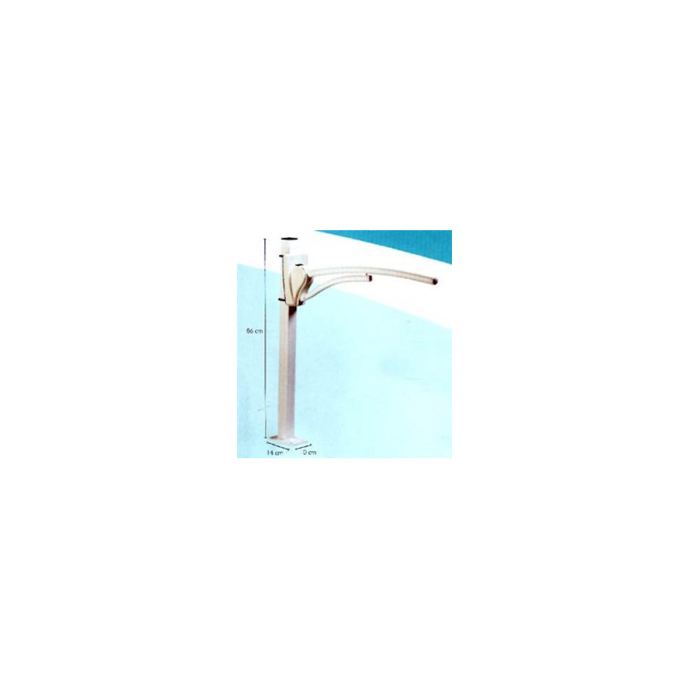 Barra abatible en acero. Longitudes disponibles: 50 cm (S0032-50), 60 cm (S0032-60), 70 cm (S0032-70), 80 cm (S0032-80), 100 cm (S0032-100). Peso: 3,5 Kg. Peso máximo del usuario: 120 Kg. Accesorios disponibles: Soporte papel (S0032-ASP) y Acolchado reposabrazos (S0032-ASP).