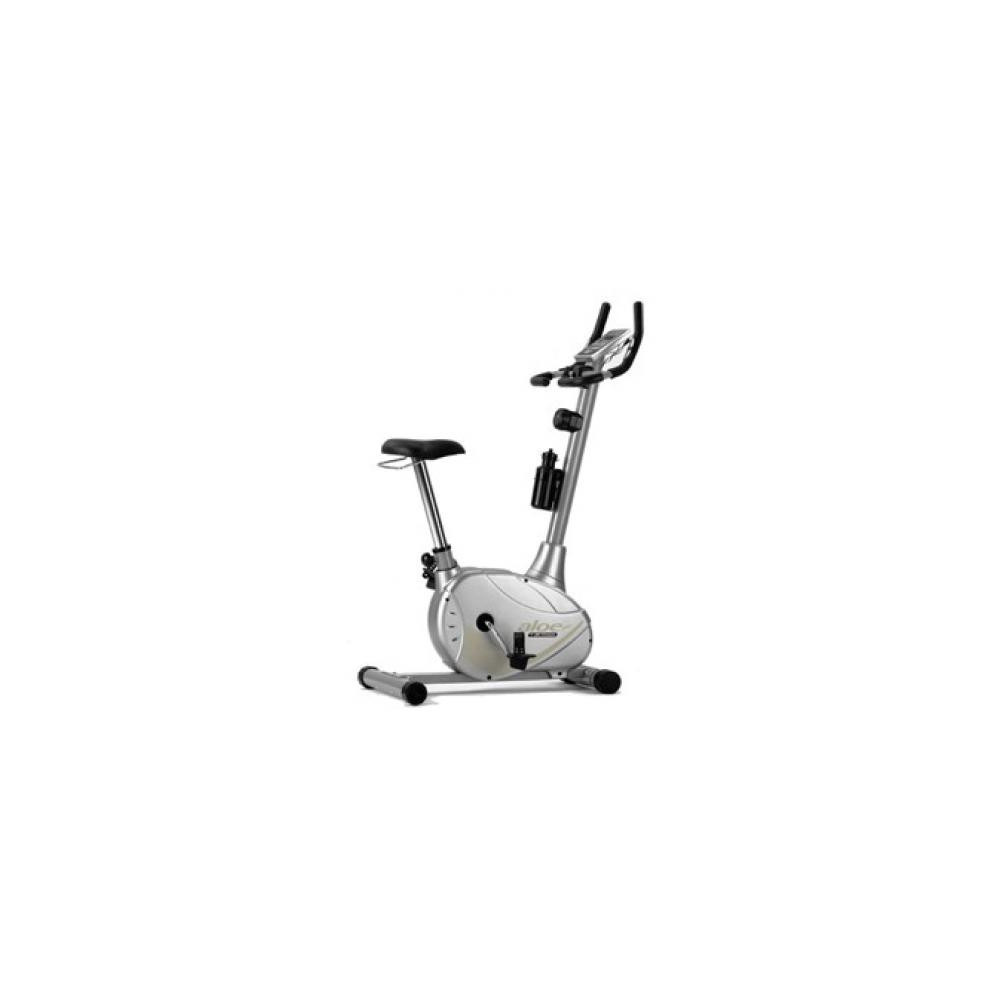 Pequeña y funcional, para uso ocasional, para entrenamientos de hasta 3 horas a la semana. Sin mantenimiento. Pedaleo suave y silencioso con diferentes tensiones, equipada con 8 puntos precisos de regulación de carga (manual). Montitor LCD de uso muy sencillo. Mide las siguientes funciones: tiempo, velocidad, distancia, calorías y pulso. Sistema de medición del pulso por contacto . Ajuste vertical del asiento . Ruedas de transporte. Largo: 80cm. Ancho: 50cm. Altp: 130 cm. Peso: 25Kgs. Peso máximo de usuario recomendado: 85Kg. Peso del volante de inercia: 5Kg.