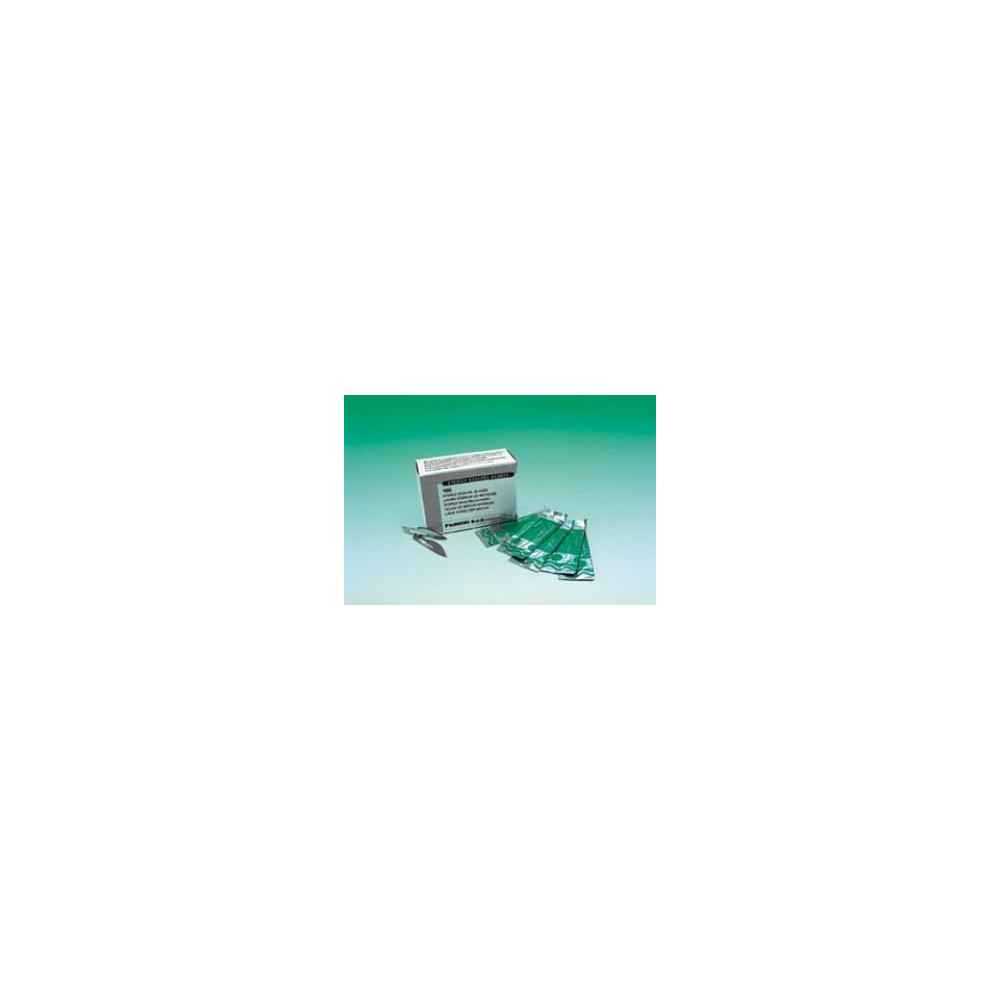 Hojas desechables, esterilizadas. Filo de acero al carbono. Números de hojas disponibles: nº10 (1IN0117-10), nº 11 (1IN0117-11), nº 12 (1IN0117-12), nº 15 (1IN0117-15), nº 20 (1IN0117-20), nº 21 (1IN0117-21), nº 22 (1IN0117-22), nº 23 (1IN0117-23), nº 24 (1IN0117-24). Caja de 100 piezas.