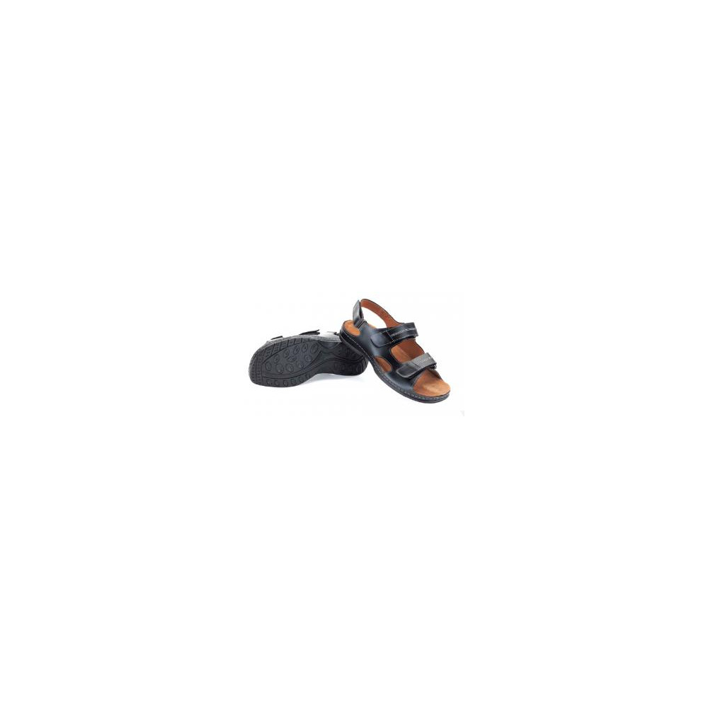 Calzado con piso de poliuretano negro. Plantilla recambiable. 3 tiras de velcro ajustables. Tacón 2 cm. Tabla 10. Color negro. Disponible del nº 40 al 46.