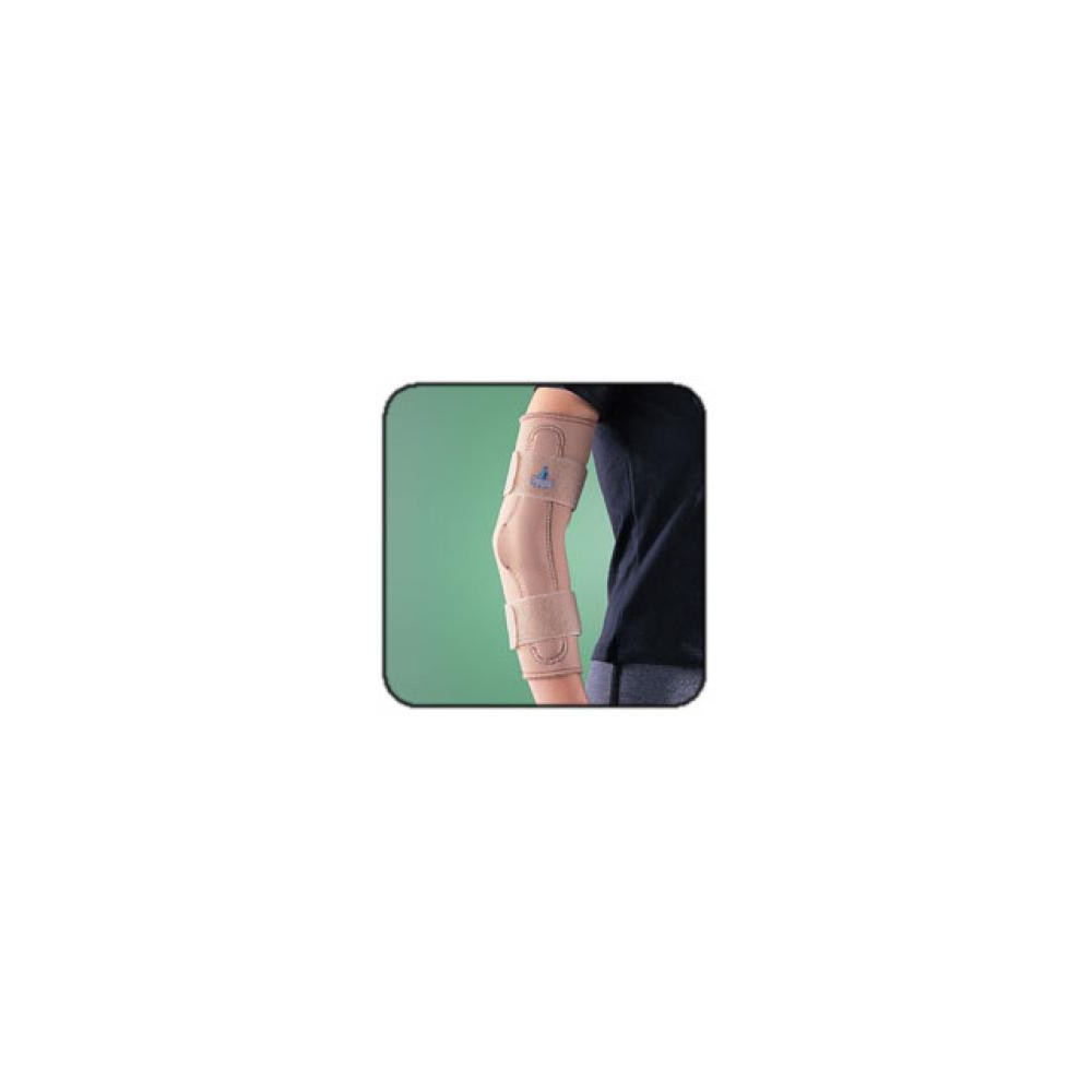 Codera articulada con bisagras de aluminio ligero con control de la hiperextensión.Proporciona un apoyo firme, una compresión uniforme y aumenta el confort. Composición: 70% neopreno, 15% nylon y 15% de algodón.Tallas: S, M, L, XL