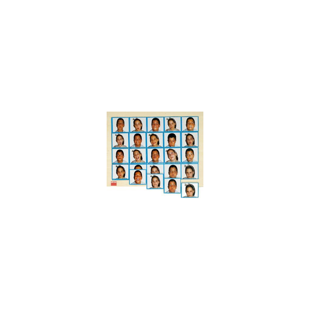 Loto fotografías de expresiones faciales. 20 piezas de 5,5x6,5cm. Medidas bandeja 29x38cm.