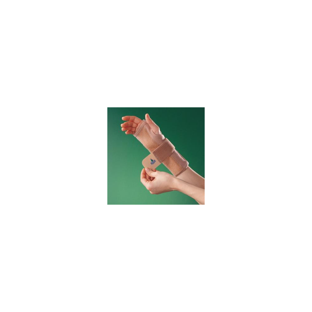 La porción de pulgar semi-rígido contorneado proporciona soporte, inmovilización y separación del mismo. Proporciona estabilidad a la muñeca con una moderada limitación del movimiento. Venda elástica de muñeca que da una mayor estabilidad a la misma. El f