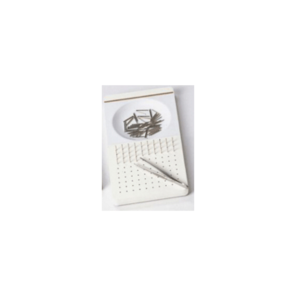Prueba que consiste en colocar unas clavijas-alfileres en los agujeros mediante unas pinzas. Requiere coordinación entre la vista y las manos. Incluye pinzas, 100 alfileres y el manual de normas del examinador.