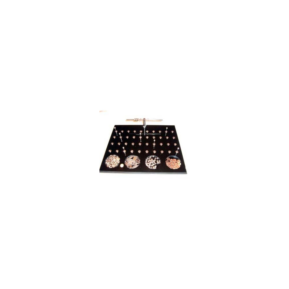 Se utiliza para medir la velocidad y la destreza manipulativa en el brazo, la mano y los dedos. Está fabricado en un plástico resistente. Tiene cuatro recipientes para los distintas piezas. El test consiste en enroscar o insertar las piezas. Peso: 1,3 Kg.