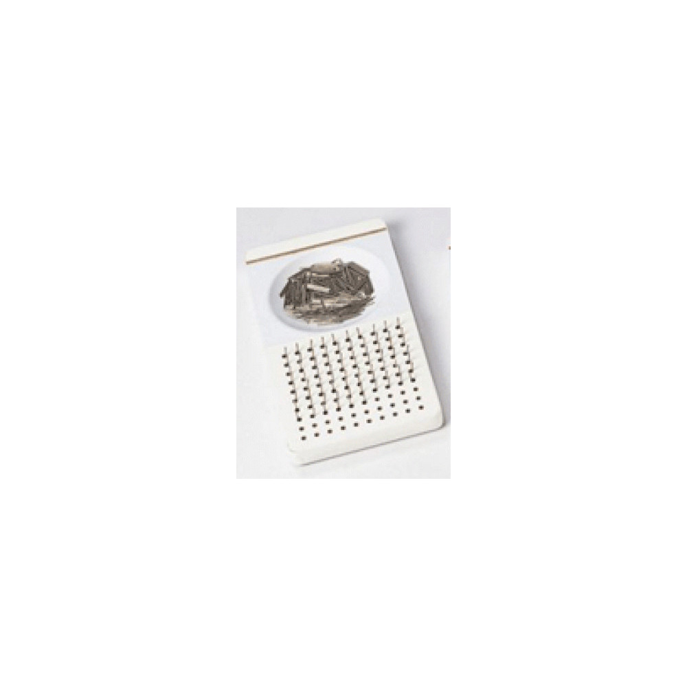 Evalúa rápidamente la manipulación de pequeños objetos (coordinación fina). También útil para el entretenimiento. Incluye el manual. Medidas de la tabla 28x14 cm. Medidas de las clavijas 2.5 cm.