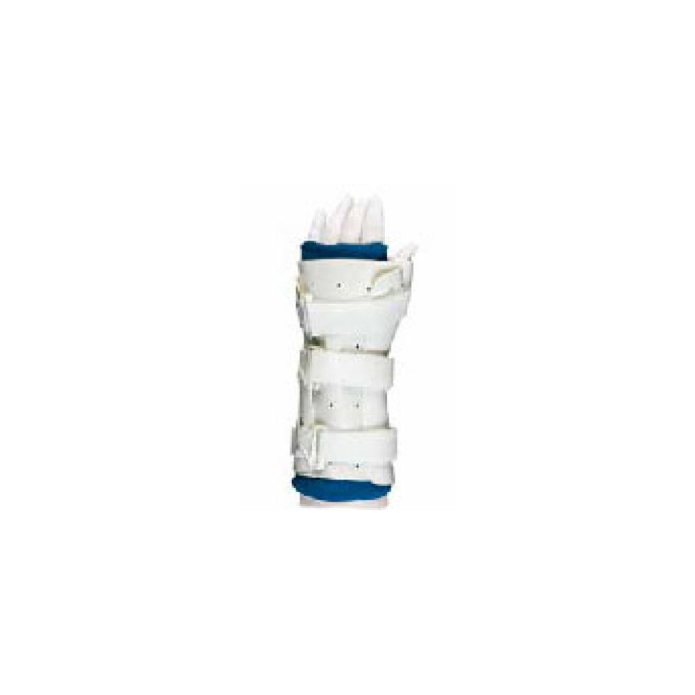 Inmovilización del pulgar opcional. Fabricada en material termo-moldeable. Permite radiografiar el lugar de la fractura con la ortesis puesta. Especificar derecha o izquierda.