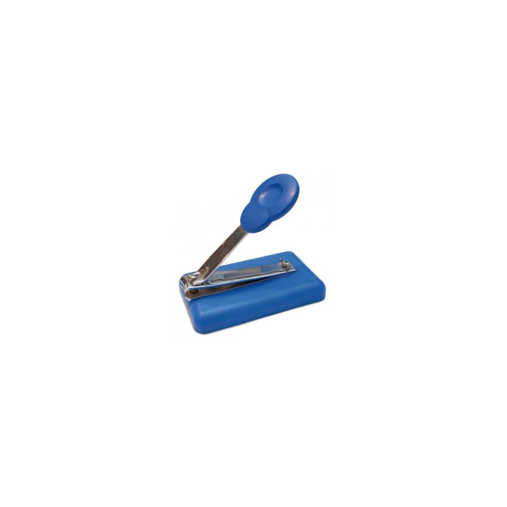 Cortauñas montado sobre una base de plástico con patas antideslizantes. Fabricado en acero inoxidable. Es ideal para personas que no pueden agarrar o utilizar los habituales cortaúñas pequeños. Largo: 10 cm. Ancho: 5,50 cm. Peso: 70 g.