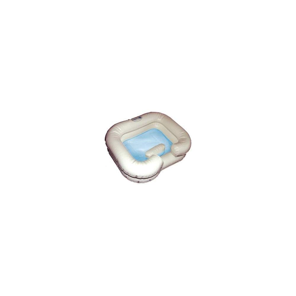 Práctico para lavar la cabeza a una persona encamada. Fabricado en vinilo, hinchable y con una abertura para apoyar el cuello. Se infla fácilmente sin necesidad de bomba. Lleva un tubo de drenaje para evacuar el agua. Peso: 520 g. Ancho:61cm. Largo:51cm. Alto:20cm.