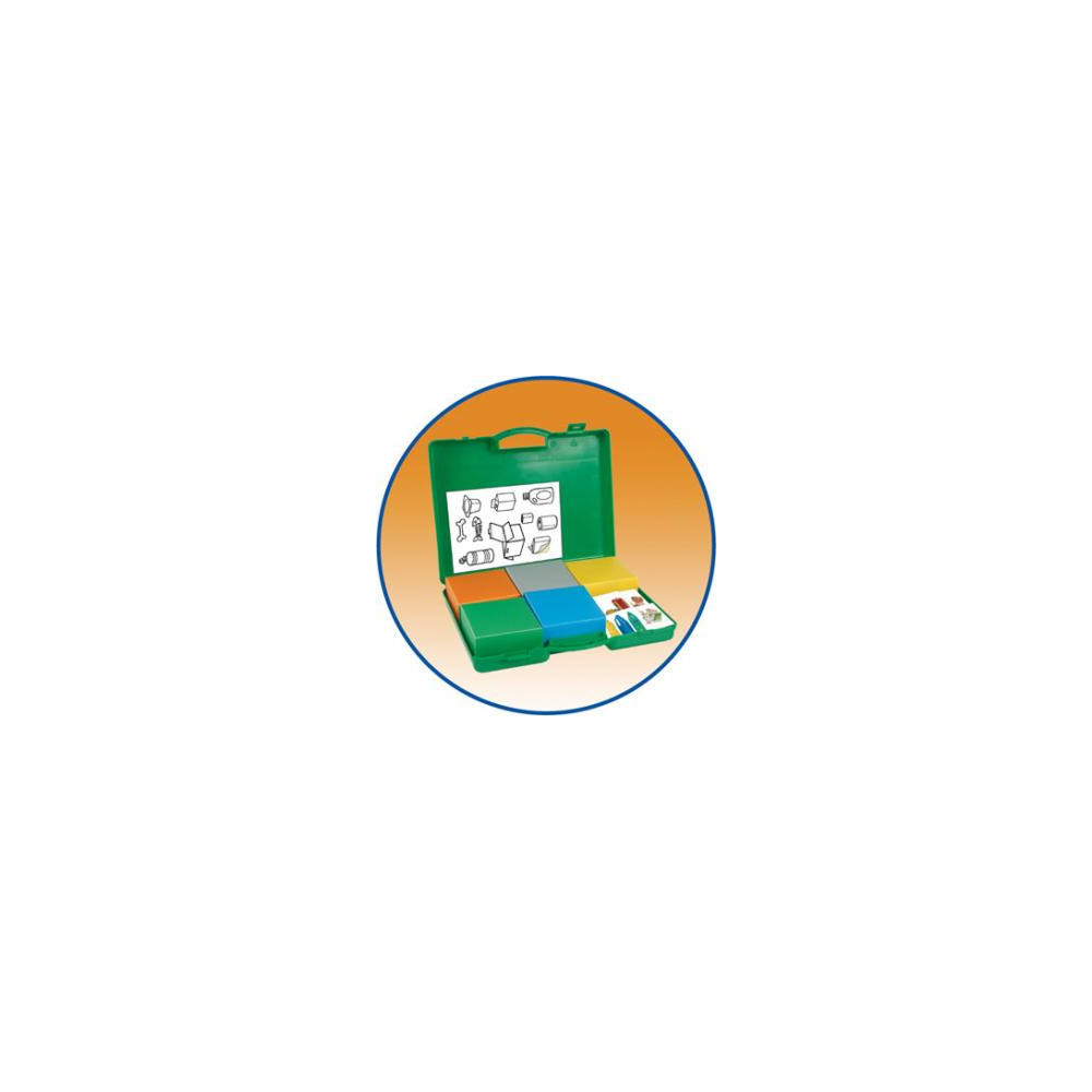 Juego de asociación para aprender a separar y clasificar los distintos ipos de residuos: orgánicos, plásticos, envases, latas, papel, cartón, vidrio, pilas, baterías, etc. Juego compuesto por 5 contenedores (azul, verde, amarillo, maranja y gris) + 35 fichas con fotografías que representan diferentes tipos de residuos. Contiene guía y maletín contenedor.