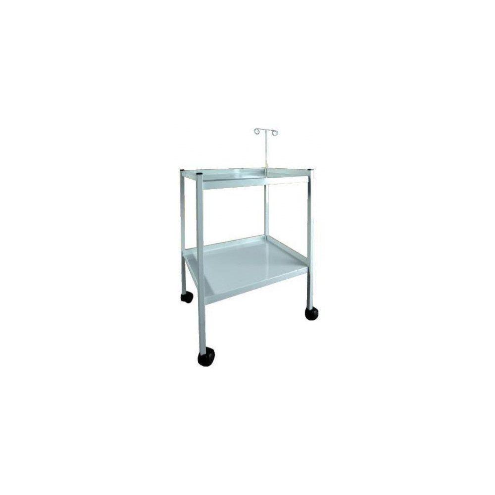 Mesa para electro en acero, compuesta con 2 baldas con reborde en 3 lados y soporte regulable en altura para cables. Medidas: 550 x 400 x 840 cm. Ruedas de Ø 50 mm. Peso: 9 Kg. Disponible an cero esmaltado (1MC0749-AE) y en acero inoxidable (1MC0749-AI).