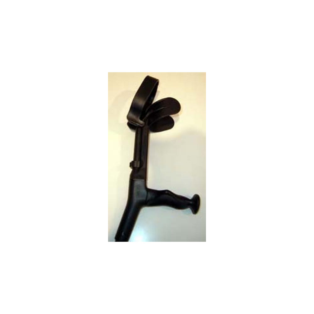 Bastón con puño anatómico para mano derecha e izquierda. Puño y codo compacto en termoplástico, con regulación de altura del apoyo del codo. Caña de aluminio endurecido lacada en negro o anodizada en gris. Codera abatible opcional. Distancia del puño a la codera: de 21 a 27 cm. Distancia del puño al suelo: 95 cm. Peso: 642 g. Peso máximo del usuario: 150 Kg.