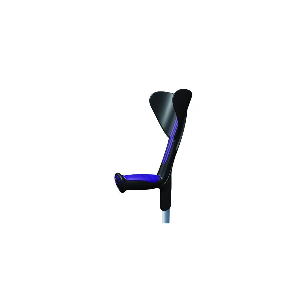 Muleta de aluminio, color gris anonizado, con mango ergonómico color azul. Peso soportado hasta 140 kg. La muleta es fácilmente ajustable de 12 veces por clip (2 cm cada clip). Distancia del puño al suelo: 758-883mm. Contera: 19mm. Conteras disponibles: M0550-PVC (standar), M0550-SOFT, M0550-EXTRA, M0550-FLEX. Clip de fijación: M0550-CLIP.