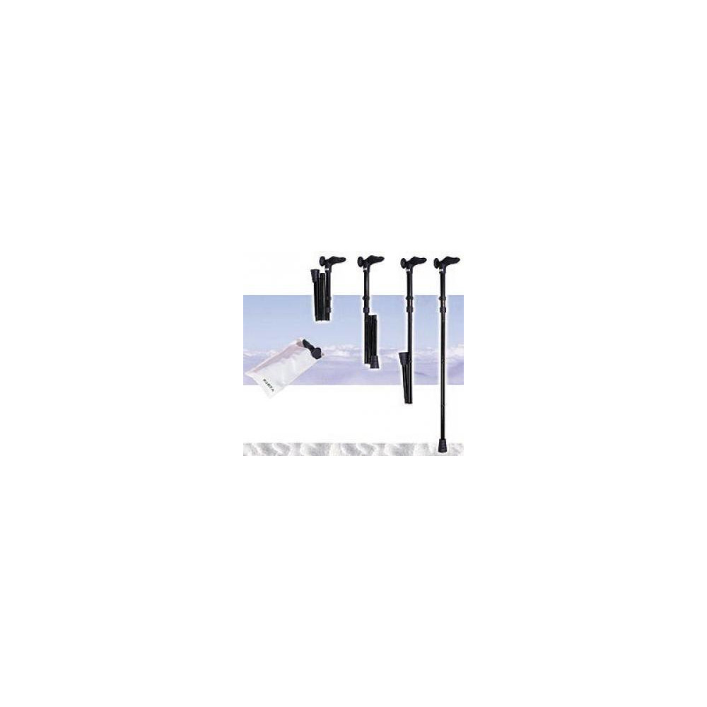 Bastón con puño anatómico en termoplástico. Caña de aluminio endurecido plegable; formada por cuatro tramos de tubo de 18 mm. de diámetro que se acoplan entre sí. Regulación en altura de 79 a 91 cm. Peso: 390 g.