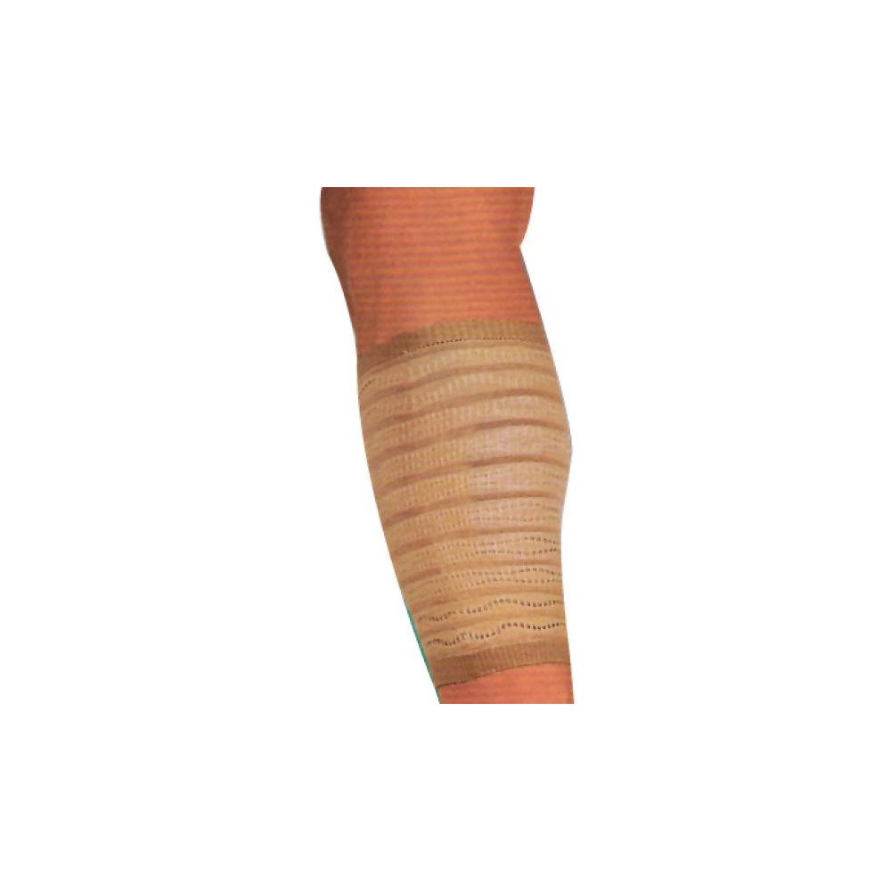Calentador con forma anatómica, adhiere sin bajarse. Indicado para cansancio y calambres musculares. Disponible en tallas: P-M-G.