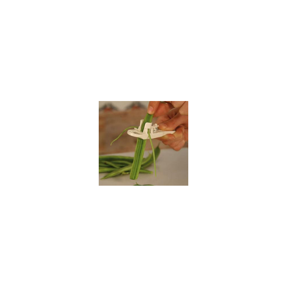 Un práctico útil para la cocina, con el que podrá cortar fácilmente los extremos de las judías y trocearlas longitudinalmente en trozos finos de una forma rápida y sencilla. La judía se introduce entera y sale cortada en pequeñas tiras.
