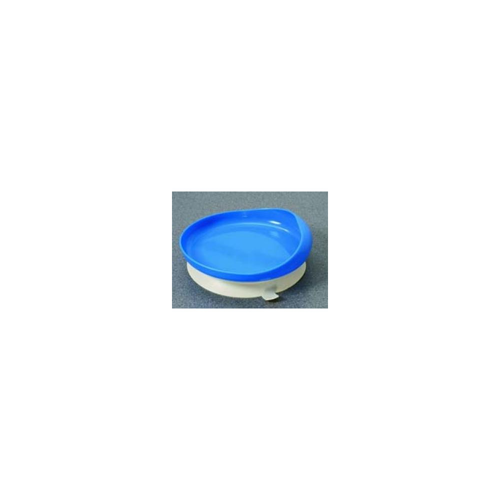 El plato es más elevado por un lado que por otro para evitar que se derrame la comida. Está fabricado en un plástico resitente al calor y tien una base con ventosa. Lavable en lavavajillas sin la parte inferior. Diámetro: 16,5 cm. Peso: 95 g.