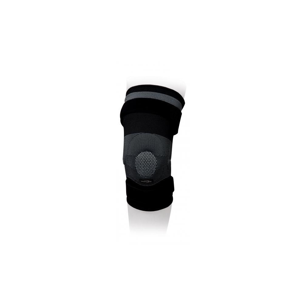 Soporte postoperatorio tras lesiones de los ligamentos medio y lateral, o de menisco. Soporte y compresión tras inestabilidades agudas o crónicas, o artrosis leve de rodilla. Varillas laterales incorporadas. Bandas superior e inferior desmontables, para un ajuste correcto. Tejido más suave en la zona poplítea, para mayor comodidad. Tejido no compresivo sobre la rótula para evitar la aparación de edema local. Estabilizador rotuliano de silicona. Modelo bilateral. Sin látex.
