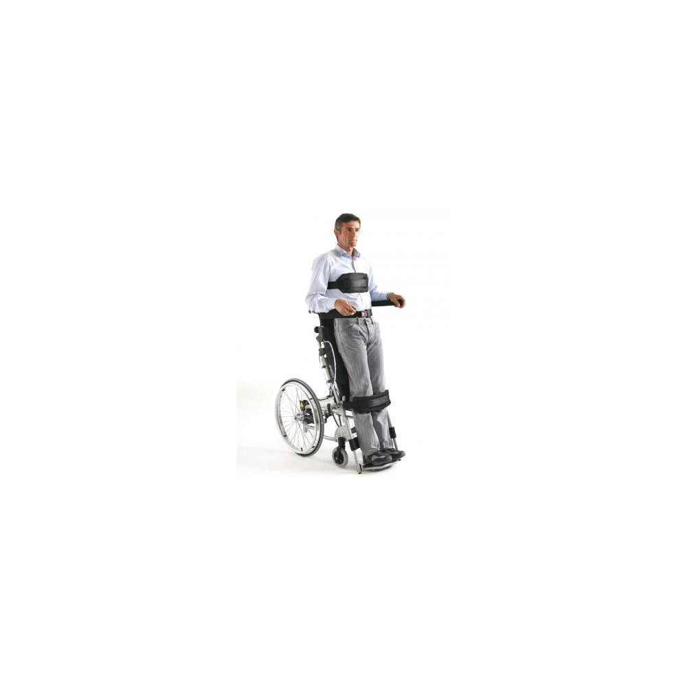 Silla de aluminio de propulsión manual con verticalización eléctrica del asiento. Va dirigida a usuarios activos que desean ponerse de pie disfrutando plenamente de numerosos beneficios de verticalización: independencia, bienestar, estimulación fisiológica, contactos sociales. Respaldo abatible y regulable en altura. Incluye cincha pectoral, cinturón abdominal, soportes de rodillas blando y taloneras. Peso máximo soportado: 115Kg. Para más información contacte con la tienda Mundoabuelo más cercana.