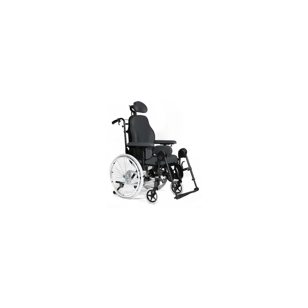 Silla multiposición diseñada para personas que necesitan ante todo control postural y posicionamiento. Con asiento y respaldo anatómico Confort. Los reposabrazos son ajustables en altura, con almohadillado amplio para un mayor confort del usuario. Respaldo reclinable de 0 a 35º, y basculación de -3° a 25° para alivio de presión y prevención de escaras. 3 tallas de asiento disponibles: 38,43 y 45cm. Asiento regulable en profundidad desde 42 a 50 cm. Empuñaduras ajustables en altura. Muy fáciles de ajustar para un mayor confort del cuidador. Muy equipada: con reposapiés elevables, reposacabezas acolchado, soportes de tronco, cuña abductora y ruedas antivuelco con tubos de cola integrados de serie. Disponible con ruedas traseras de 16, 22 y 24", con o sin frenos de tambor. También está en versión "Básica" (sin reposacabezas, soporte de tronco ni cuña abductora).Peso máximo de usuario: 145Kg.Para más información consultar con en la tienda Mundoabuelo más próxima.