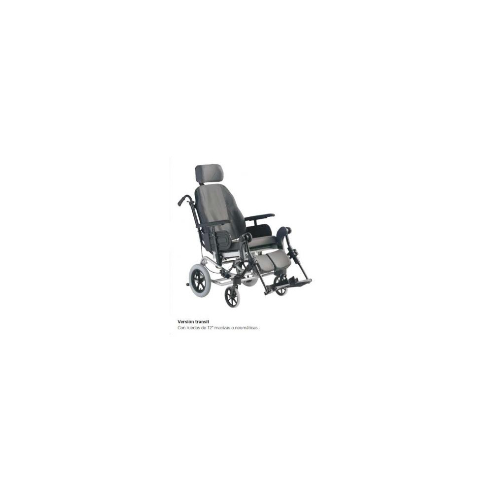 Silla con basculación del asiento y el respaldo mediante pistón neumático. Permite una posición casi estirada. Reposapiernas elevables de serie con cojines acolchados para la protección de las rodillas y apoya-pantorrilllas.Respaldo acolchado ajustable en altura de 60 a 71cm. Cojín de asiento anatómico con funda Dartex. 3 tallas de ancho de asiento. Asiento regulable en profundidad. Reposabrazos con nuevo diseño extraíbles, regulables en altura y profundidad. Ruedas traseras macizas o neumáticas de 300mm o de 600mm (autopropulsables).Se pueden añadir múltiples accesorios (reposacabezas, soportes laterales, taco abductor, ensanchador de reposabrazos,...)Estos accesorios no vienen en la configuración estándar.Peso máximo del usuario: 125 Kg.Para más información consultar con en la tienda Mundoabuelo más próxima.