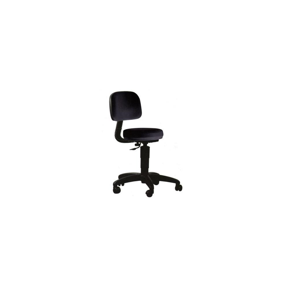 Silla giratoria, regulable en altura 47-59 cm. Diámetro del asiento: 30 cm. Ancho total (ruedas) 54 cm. Distintos colores. Funda en skai. Densidad 25 Kg