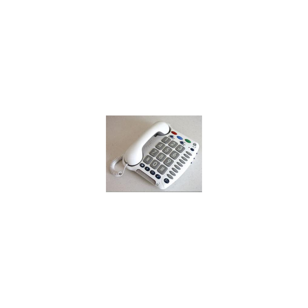 Teléfono especialmente diseñado para personas con disminución auditiva y/o visual y para zonas de ruido (naves industriales, lugares públicos...).Timbre extra alto hasta 88dB (con pilas). Ganancia en recepción de sonido: 30dB. Ganancia de tonos graves y agudos en el auricular: 10dB. Ganancia volumen salida de voz: 4dB. Indicador visual de llamada (banda inferior). Botones grandes. 3 memorias de emergencia. 9 memorias directas. Volumen y tono ajustable. Rellamada último número. Compatible con audífonos:Amplificación alternativa con audífono en posición T. Peso: 825 g.