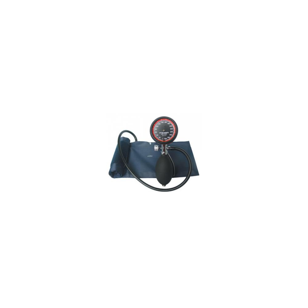 Manómetro de precisión diseñado a prueba de golpes. Tolerancia +/- 3mm Hg. Rango de 0-300 mm- Pera con válvula de purga cromada . Mango de cuchara de acero inox. Manguito nylon con cierre velcro, adulto, 1 tubo y cámara P.V.C. Exento de latex. Bolsa transporte con cremallera.