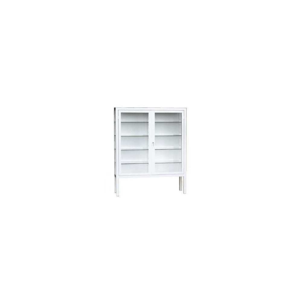 Vitrina de acero con dos puertas abatibles de cristal y cerradura, compuesta de 4 baldas de cristal regulables en altura. Peso: 48 Kg. Medidas: 1200 x 350 x 1460 cm. Disponible en acero esmaltado (1MC0920-AE) y en acero inoxidable (1MC0920-AI).