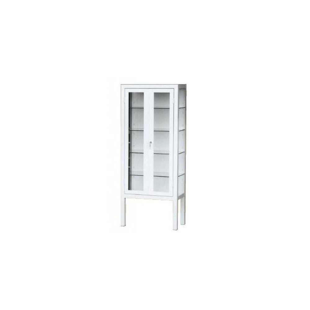Vitrina de acero con dos puertas abatibles de cristal y cerradura, compuesta de 4 baldas de cristal regulables en altura. Peso: 48 Kg. Medidas: 600 x 350 x 1460 cm. Disponible en acero esmaltado (1MC0921-AE) y en acero inoxidable (1MC0921-AI).