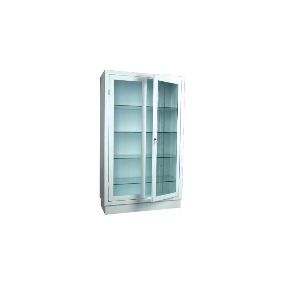 Vitrina en acero compuesta de 2 puertas abatibles y 4 baldas de cristal regulables en altura. Medidas: 900 x 350 x 1500 cm. Disponible en acero esmaltado (1MC0931-AE) y en acero inoxidable (1MC0931-AI).