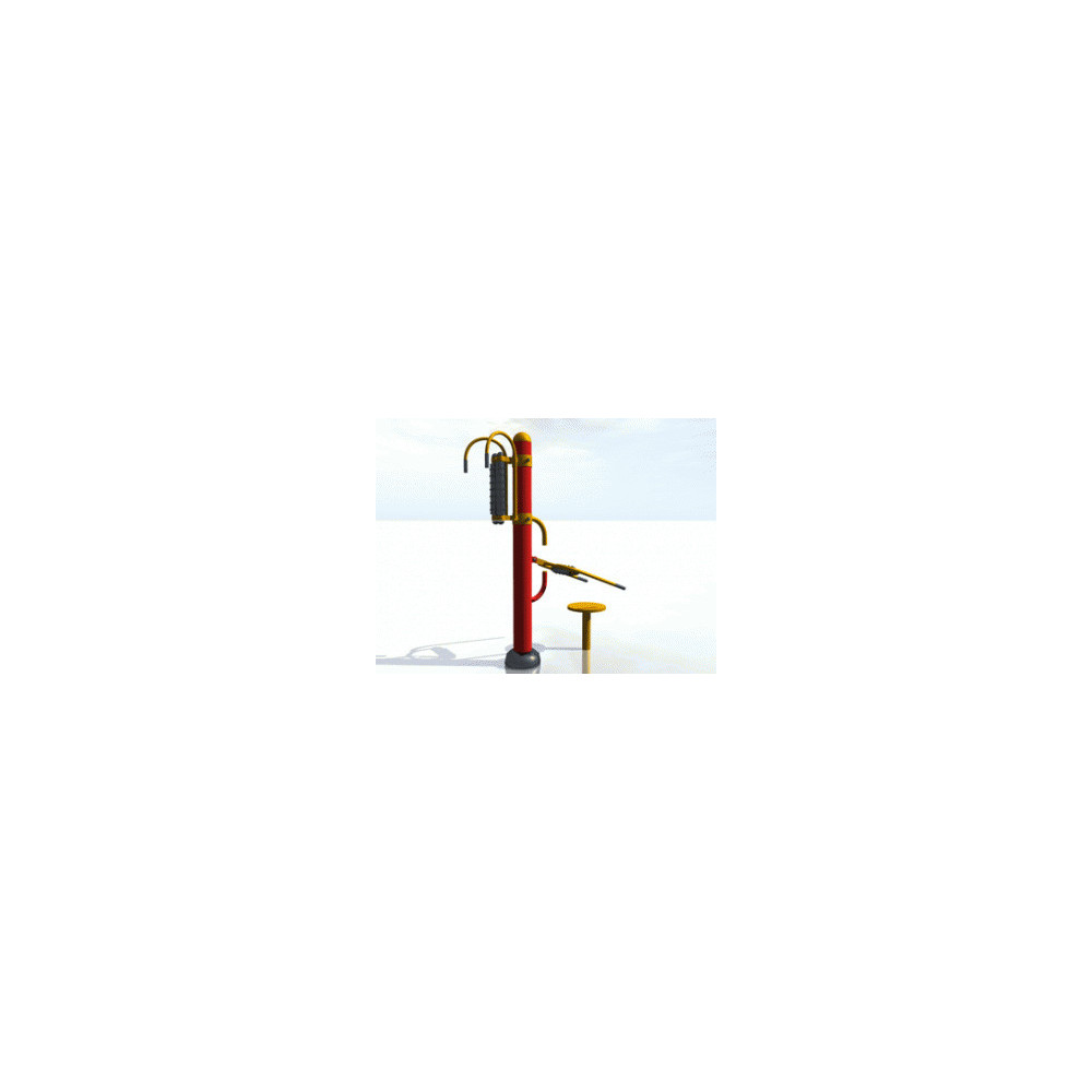 Función: Relaja la tensión muscular de cadera y espalda. Ayuda a mejorar la circulación y el sistema nervioso. Uso: Coloque su espalda sobre la columna de masaje y realice un movimiento lento, vertical u horizontal. Adecuado para personas de avanzada edad. Realización: En función de las necesidades de la persona, no hay especificaciones para este aparato. Nota: Se trata de un movimiento de relajación por lo que no hay apretar excesivamente la espalda contra los rodillos. MEDIDAS: 1290x680x1700 mm