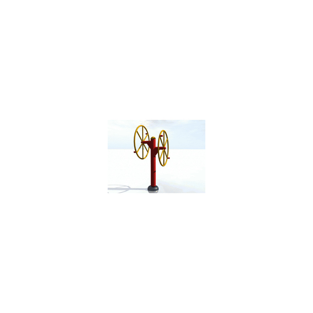 Función: Refuerza la musculatura de miembros superiores así como la flexibilidad y agilidad de las articulaciones del hombro. Especialmente indicado para rehabilitaciones de movilidad del hombro. Uso: Tome el asa de la rueda rotativa con ambas manos y gire simultáneamente en el sentido de las agujas del reloj o en sentido contrario, aconsejado para gente de temprana edad. Realización: En función del estado físico de la persona. Se aconsejan 4 series de 30 segundos por cada sentido. Nota: se trata de un movimiento completo de la articulación del hombro, por lo que su realización debe ser pausada prestando atención al ejercicio y a la colocación del cuerpo respecto del aparato. En caso de dolor articular, suspender el ejercicio. MEDIDAS: 660×950×1790 mm